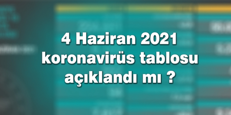 Türkiye 'de günlük olarak koronavirüs tablosu Sağlık Bakanı Fahrettin Koca tarafından açıklanmaya devam ediyor. Sağlık Bakanı Fahrettin Koca, 4 Haziran 2021 tarihinde koronavirüs tablosunu açıkladı.