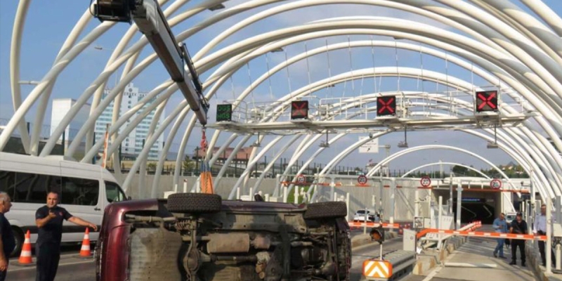 Üsküdar'da Avrasya Tüneli girişinde bir araç gişelere çarparak devrildi. Kazada sürücü yara almazken, 3 gişe trafiğe kapatıldı. Trafik bir süre tek şeritten sağlanırken D-100 kara yolunda uzun araç kuyruğu oluştu. Saat 09:20'de aracın kaldırılmasının ardından trafik yeniden ulaşıma açıldı.