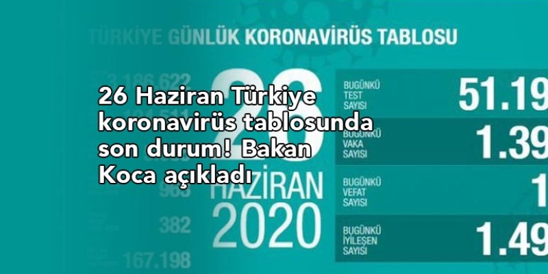 İşte 26 Haziran Türkiye koronavirüs tablosundaki son durum...